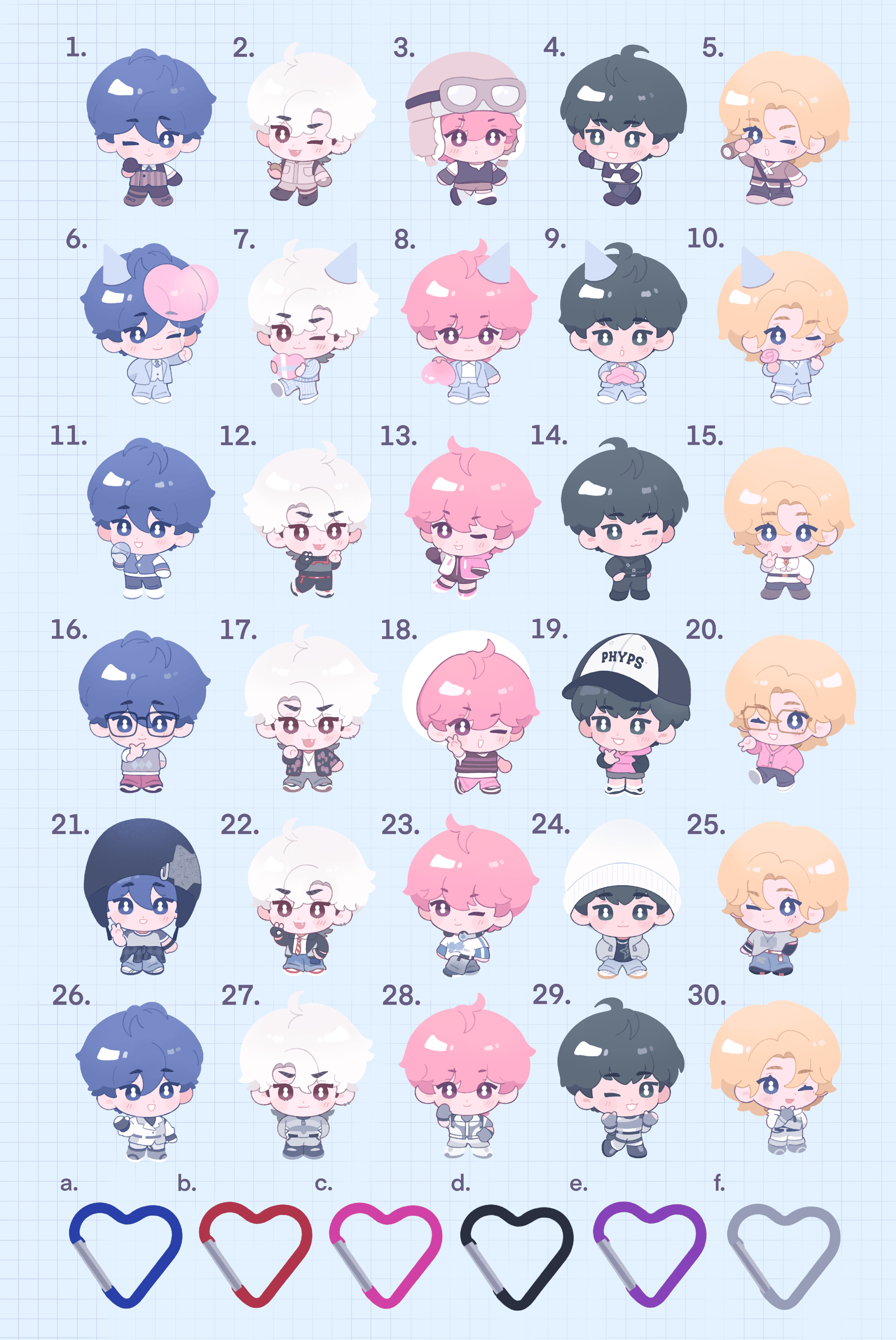 This product contains: 1 heart shaped carabiner of your choice (4.27 cm/1.68"), and the amount of charms you'd like to add.